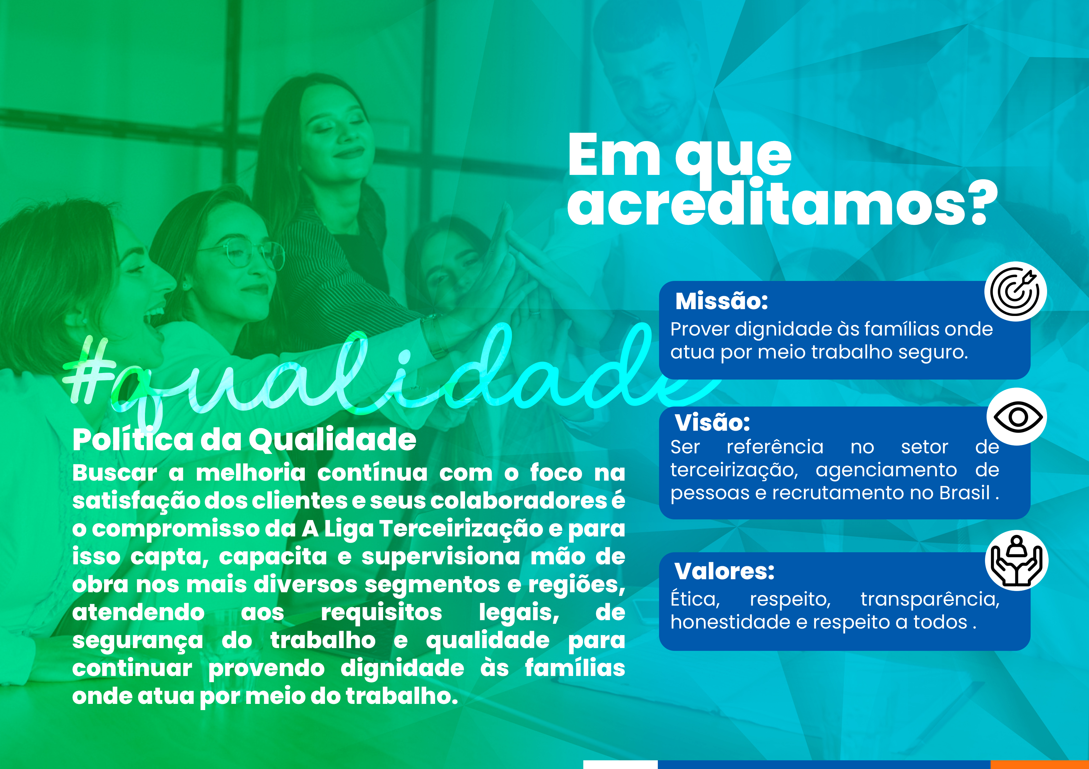 Fundada em 2011 a A Liga é uma empresa de terceirização de serviços para organizações de todos os portes e segmentos, com sede em Pirassununga e clientes em várias cidades como Leme, Araras, Pratânia, Pacajás, Santo Agostinho.